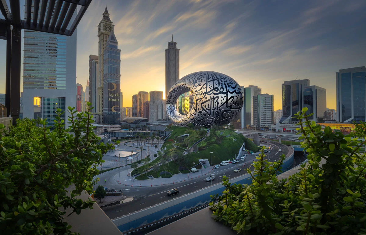 The Museum of the Future, whose soaring, arching Arabic calligraphy-engraved stainless steel presence sits in the heart of Dubai’s business district, focuses on harnessing the lessons from our present day to construct the future, inviting the viewers to participate in doing so through a highly inclusive approach.