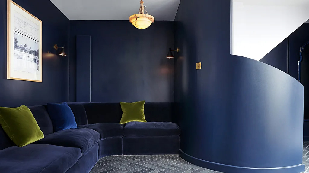Interior designer Rachel Chudley chose this sumptuous ultramarine shade – "plimsoll" by Paper and Paint Library – for a space at the foot of a staircase in a home in Bloomsbury, London. "A deep blue colour against the light tone of the staircase gives drama and personality to this small under-stairs area, while also making it feel cosy," she says. Chudley is known for her exuberant yet considered use of colour, which has long been a hallmark of her projects. Her interest in individually blended paint is in step with the current growing demand for bespoke colours and curated paint ranges.