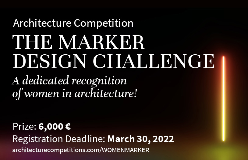 The Marker Design Challenge "A dedicated recognition of women in architecture!" competition tasks its participants with designing a physical marker that will be placed next to a structure or landscape of their choice that was designed by a woman, anywhere in the world. The marker can come in any form – as a plaque, monument, mural, sculpture, symbol, piece of street art, or even physically embedded in a cornerstone.