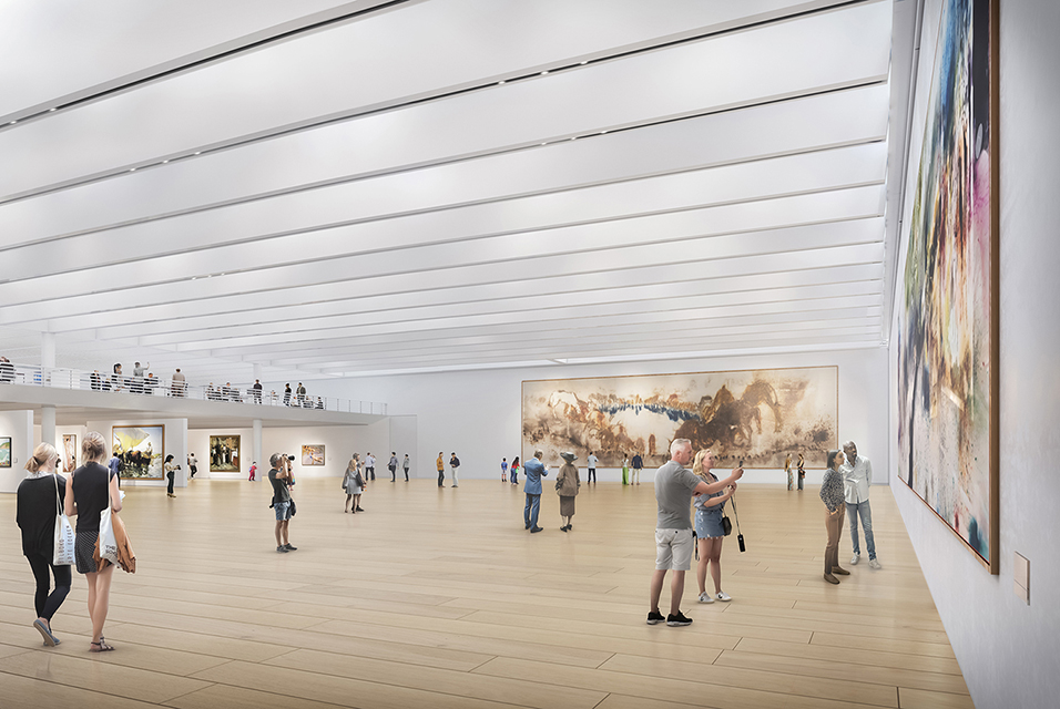 The guiding idea behind this project is to gain back the protagonism of the 1945 building by restoring its original entrance. Over the existing installations, a uniquely-sized space is designed to respectfully rest over the 1945 and 1970 buildings, equipping the museum with 2,000 m2 of new galleries on a single open, flexible floor, an optimal gallery for any art curator.