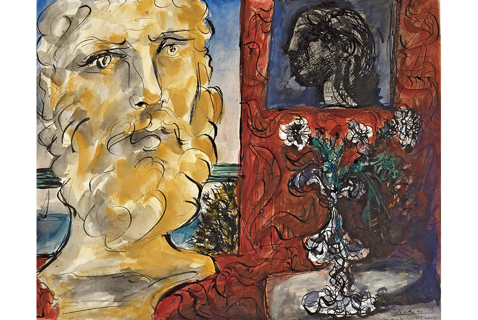artdaily_NEW YORK, NY.- Sotheby’s announced that they will present Pablo Picasso’s Nature morte à la tête classique et au bouquet de fleurs as a highlight of their Impressionist & Modern Art Evening Sale on 12 November 2019 in New York. Having remained in the same family collection for more than 35 years, this lyrical work on paper from 1933 is among the finest of a small group of highly-worked watercolors and gouaches on this subject that the artist created while on holiday in Cannes with his wife Olga and his young son Paolo.