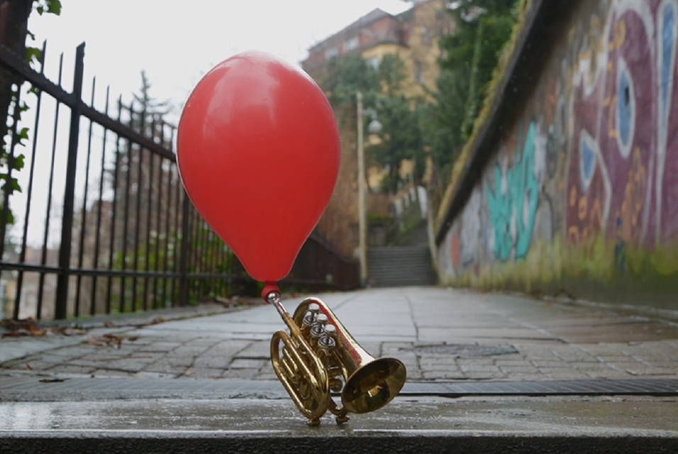 Nevin Aladağ: Fanfare includes the artist’s playful video work Traces (2015), an audio-visual portrait across three projections that depicts the urban landscape of Stuttgart in Germany, the city of her childhood. Here a series of instruments are played, not by musicians, but by the city itself: a tambourine bounces down a deserted street; an accordion hangs from a lamppost; a violin revolves on a spinning merry-go-round. By establishing playful and contingent musical situations, Aladağ creates a poetic portrait of the urban landscape.