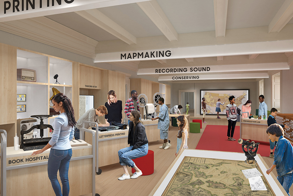 The learning lab would provide families, teens and school groups a behind-the-scenes view of the Library and new opportunities to engage with diverse materials and media from the collections through informal, experiential learning. The center will be designed with young people in mind and give learners of all ages interactive experiences, both physical and digital. It would also allow visitors to engage with diverse media in the collections, from cuneiform writing to film editing and oral histories.