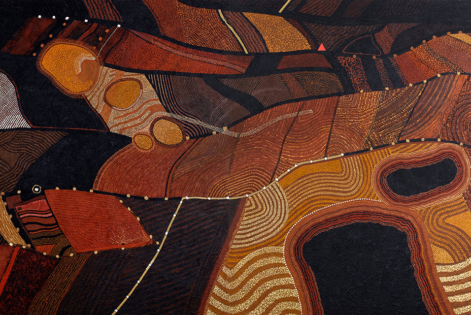 While his early paintings were mostly pictorial descriptions of landscapes with wide, open skies, his later work, from the 1990s onwards, began to lean towards abstraction and became increasingly studio based. This development was greatly influenced by a period spent photographing landscapes from the air, which enabled him to gain an awareness of the land as a two-dimensional composition.