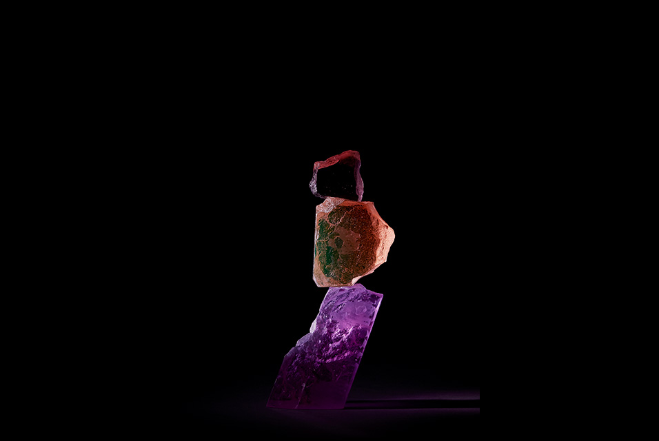 The works experiment with colour and light (transparency, reflection, layers), colour and material (varnishes, precious stones, metals), colour and textile (drapery, layers), colour and patterns (moiré effects), colour and technique or colour and space.