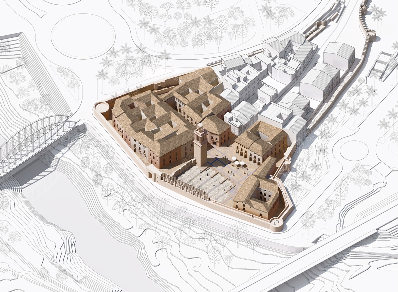 Ad Fontes focuses on repairing the urban fabric of "la Vila," placing special care on the remains of the Almohad walls and the temple of Santa Maria. The proposed new streets would intersect in a plaza connected to the bank of the Júcar River. Furthermore, it plans to revitalize the old local church, turning its bell-tower into a scenic vantage point.