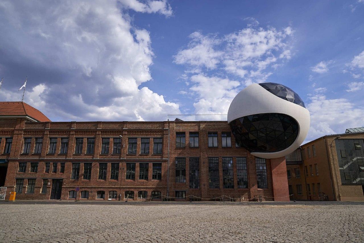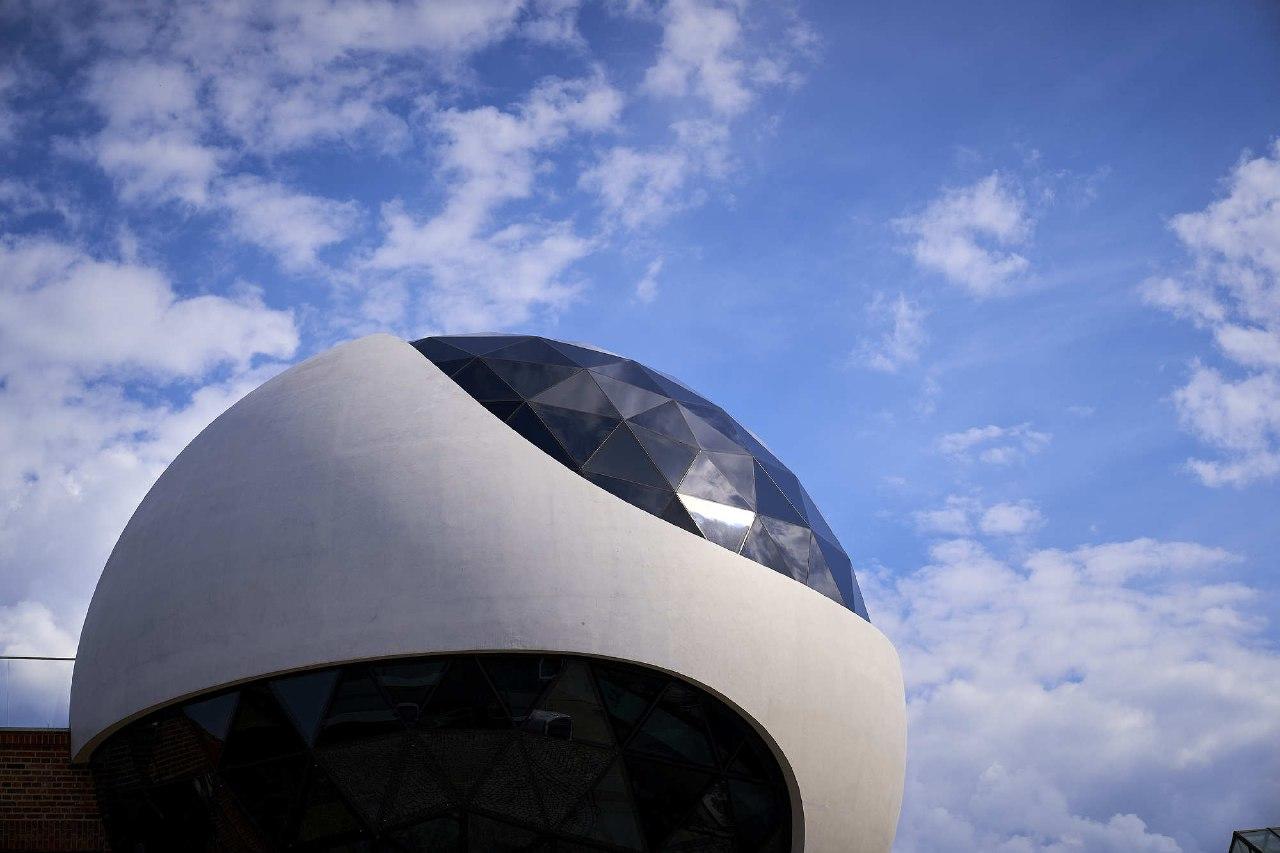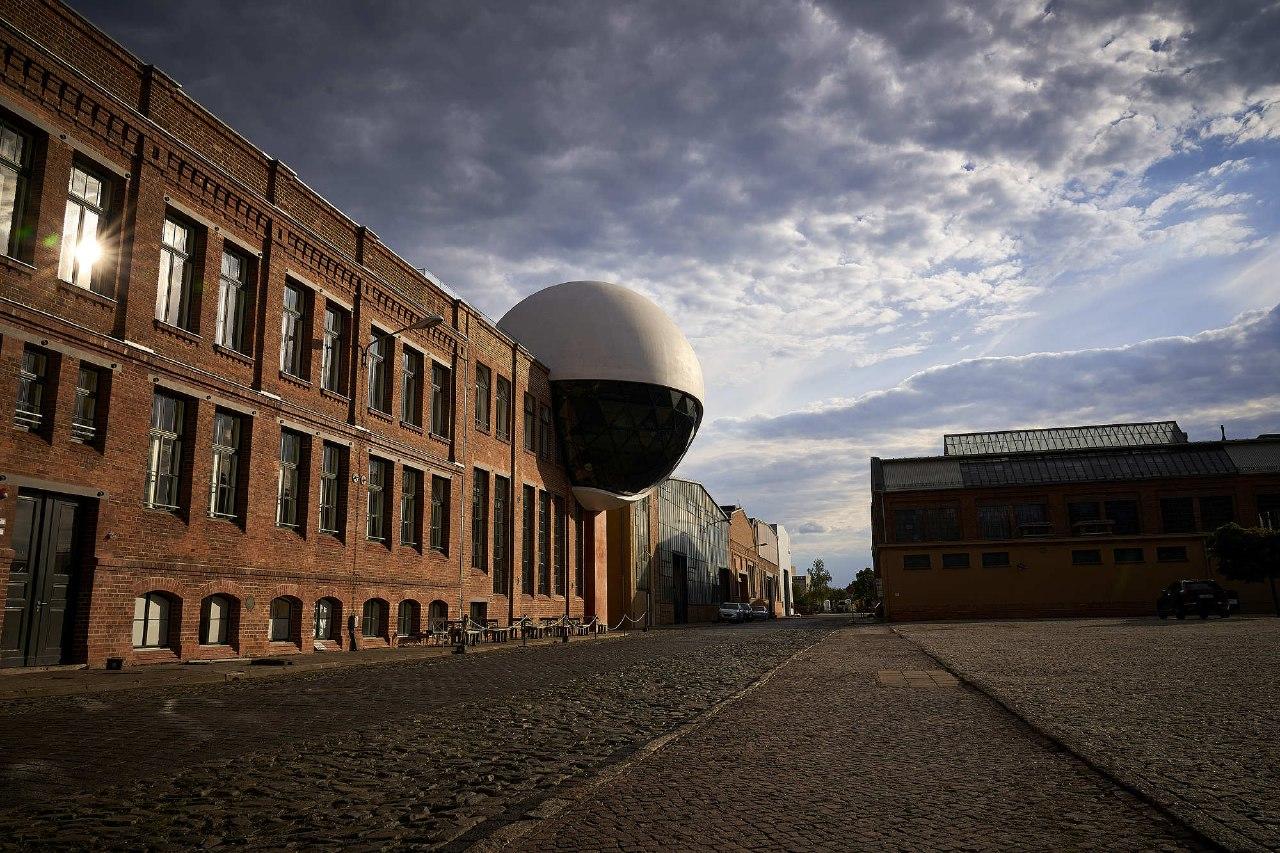 The white concrete and glazed sphere, measuring 12 meters in diameter, comprises an upper and lower hemisphere that houses a restaurant and bar. Located at the Techne Sphere industrial complex in the district of Plagwitz, in Leipzig, Germany, the extension is positioned on the top corner of a 19th-century factory used by Kirow, a tram company, and crane manufacturer. With technology taking center stage, the curved addition highlights Niemeyer’s openness to new developments and innovation to realize his visions, according to plant owner Ludwig Koehne.