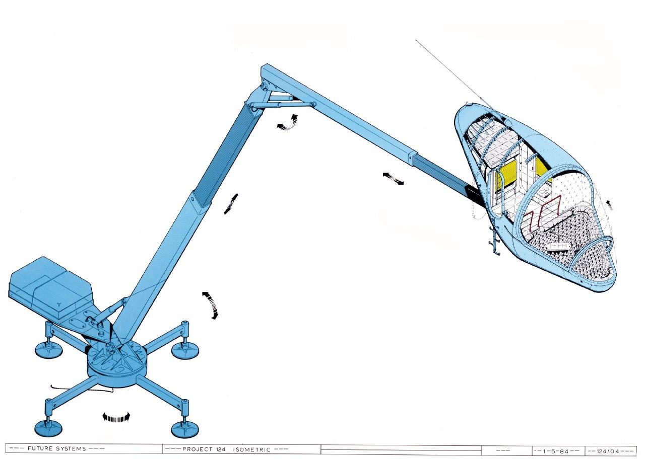 Although these illustrations focused on urban living and collective, rather than individual, spaces, they never lose sight of personal living quarters, as noted in their diagrams. Probably the best known is Capsule Houses (1964) a set of prefabricated and easily assembled homes. These modules consisted of small circular structures connected to a central macrostructure and were the central feature of The Plug-In City project.