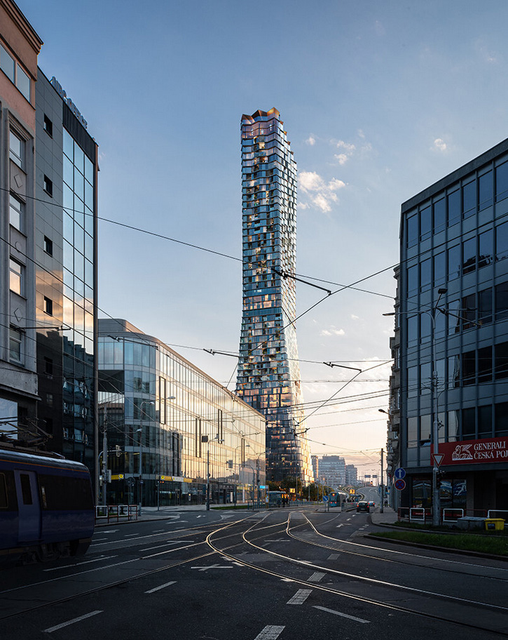 Designboom_ CHYBIK + KRISTOF unveil plans for the construction of ostrava tower, which will soon stand as the tallest skyscraper in the czech republic. the structure will rise 235 meters (770 feet) above the heart of ostrava’s city center. initiated by the architects in 2019, their latest urban infill project addresses the need to reconsider the typology of the skyscraper into a new functional entity responsive to the contemporary social needs, and in this case, the rehabilitation and reactivation of the post-industrial town of ostrava. the tower’s construction is expected to complete in 2027.