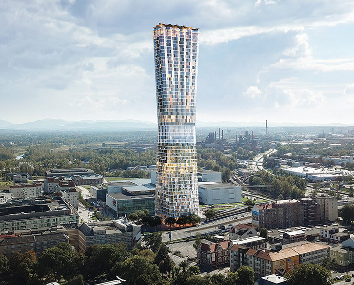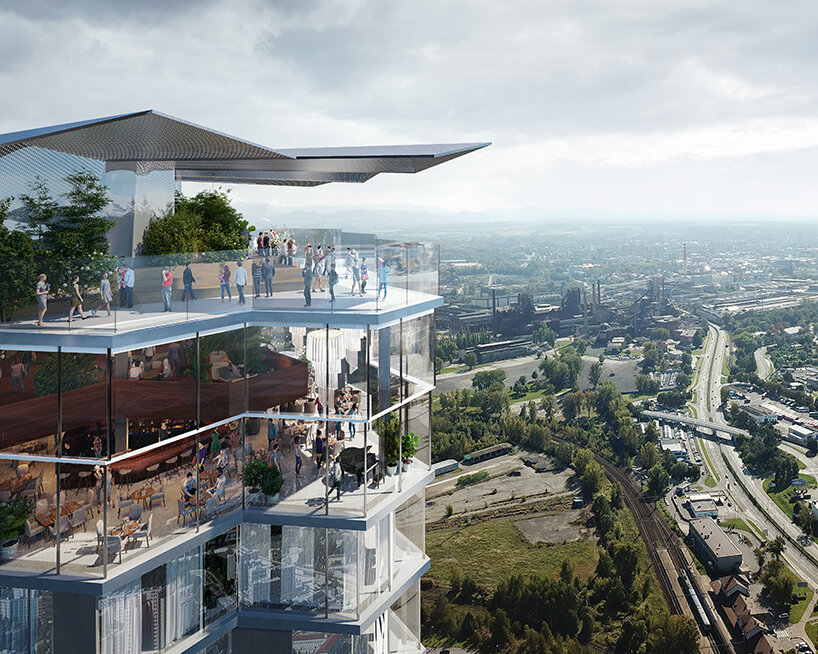 CHYBIK + KRISTOF proposes its ostrava tower in response to the rapid transformation of the czech city. over the last three decades, ostrava has transitioned from a coal-mining city to an information-driven industry. this new character requires a complete rethinking of the urban fabric to adapt. with its rich history expressed through its traditional infrastructure, the city marks the third largest in the czech republic. its development from industrial sites to cultural and residential buildings, has included a new concert hall by steven holl architects, along with museums, university campuses, galleries, and housing.