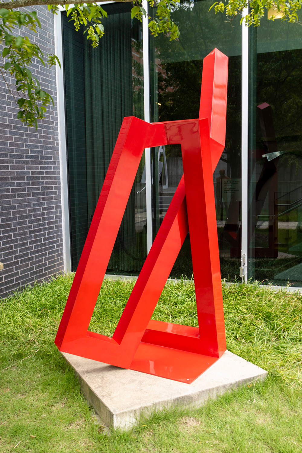 Since 1982, Manus has built a formidable career, working as a public artist, creating private commissions and even designing furniture that blends creativity with function. Her work has been shown throughout the United States and worldwide, from Monte Carlo and Florence to Havana and Naples. In 1996, her work was displayed as a part of the celebration for the opening of the museum’s then-new building, in the University of Georgia’s Performing and Visual Arts Complex. The recent sculptures on display in the current exhibition range from 6 to 24 feet tall and are made of painted welded aluminum. These looming geometric forms amplify and enhance through their scale and variety.