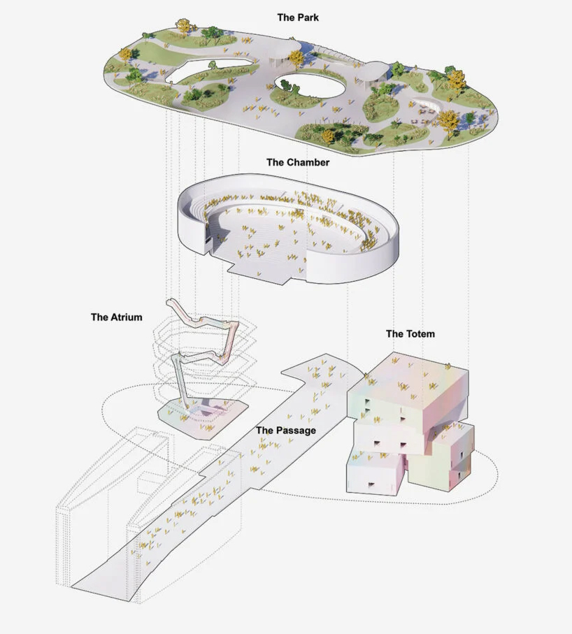 Designboom_ Pan-European design collective EUROPARC presents the winning proposal for the renovation of the Paul Henri SPAAK building in Brussels, Belgium. The design, which won first prize in an international competition organized by the European Parliament, emphasizes the identity of the European Union and the value of democracy while promoting the principles of circular construction. The project envisions a permeable structure with minimal environmental impact, including an iconic green agora that invites members to meet and exchange ideas.