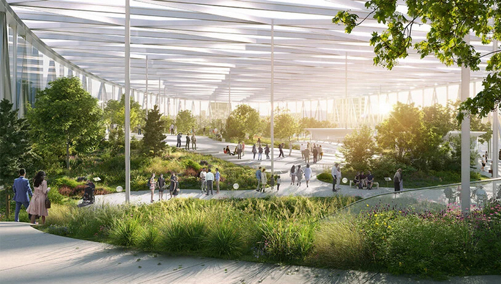 On the top floor of the new Parliament, the Green Agora is the highlight of the public’s visit to the building. The botanical garden is inspired by the ‘Agora’ in ancient Greece – it literally means ‘meeting place’ and facilitated the exchange of ideas between people at that time. The Green Agora is not only visually connected to the plenary hall through its open ceiling, but will also serve as a beacon of European democracy where citizens and members of the European Parliament can interact. In addition, the spirit of pan-European synergy will be reinforced in natural terms, as the park will bring together vegetation native to all Member States to create a diverse European ecosystem.