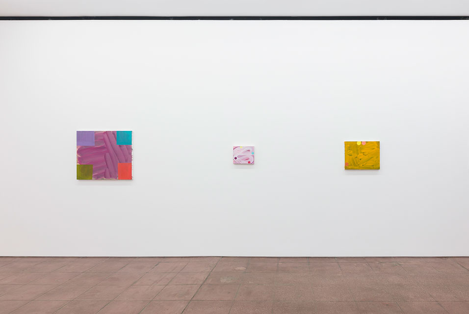 Three Ghosts takes its title from the three large works in the show; epic in scale and proportion the paintings play with transparencies, color configurations and spatial contradictions. The exhibition combines these monumental paintings with small, jewel like works, creating moments of both expansiveness and intimacy.