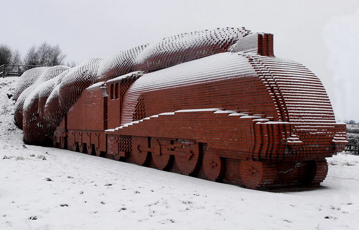 Designboom_ From January 25 to March 25, 2023, the sculpture gallery Pangolin London presents ‘Heavy Metal,’ the highly anticipated solo exhibition by David Mach. The Scottish sculptor, known for his controversial and extravagant use of materials often inspired by everyday objects, will show a series of maquettes for several ambitious and monumental works. Among the models that merge the worlds of sculpture and architecture, visitors will have the opportunity to see scaled-down replicas of a monumental train and a temple made of red bricks.