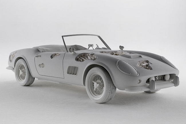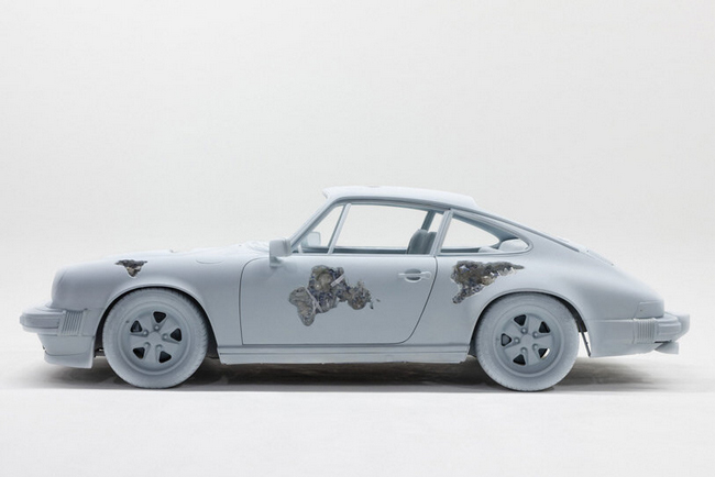 Designboom_ From February 25 to November 26, 2023, New York-based artist Daniel Arsham will present his eroded car sculptures at the Petersen Automotive Museum in Los Angeles. The exhibition, titled ‘Arsham Auto Motive,’ features several replicas of supercars, including the Porsche 356 Bonsai and other automotive artifacts in the interdisciplinary artist’s signature style, and depicts a ‘fictional archeology’ in which objects from our cultural and material present are dug up sometime in the distant future.