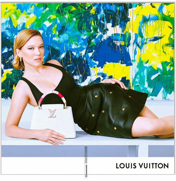 The company went ahead with the campaign, which first appeared in the New York Times‘ Sunday Style section on February 12, as well as online. Advertisements for the company’s Capucines handbags feature Seydoux holding the bags in front of three Mitchell paintings: La Grande Vallée XIV (For A Little While), a triptych from 1983; Quatuor II for Betsy Jolas (1976); and Edrita Fried” (1981).