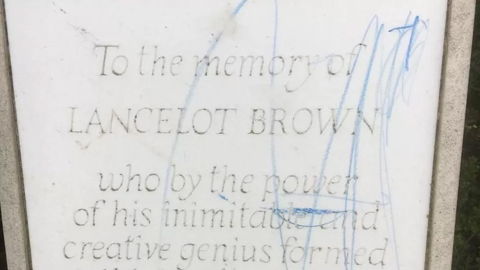 A memorial to landscape architect Capability Brown was also defaced sometime during 8 April, the National Trust said.