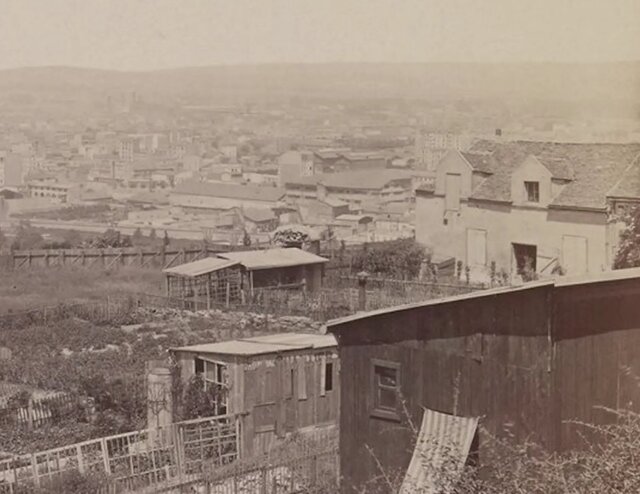 Detail of Henri Daudet’s photograph of the Debray farm, Montmartre (1887)