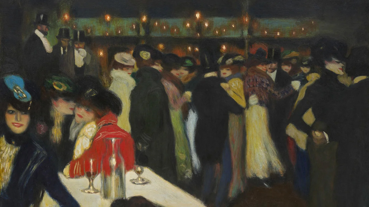 Opened at the Guggenheim on Friday, the new show “Young Picasso in Paris” comprises 10 paintings and drawings made by Picasso upon his arrival in the French capital in 1900. “Le Moulin de la Galette” depicts a lively scene at the titular venue — a famous Parisian dance hall that was painted by other artists including Pierre-Auguste Renoir. A sea of couples are seen dancing in fine hats, rendered in quick brushwork, with three figures seated at a table in the foreground.