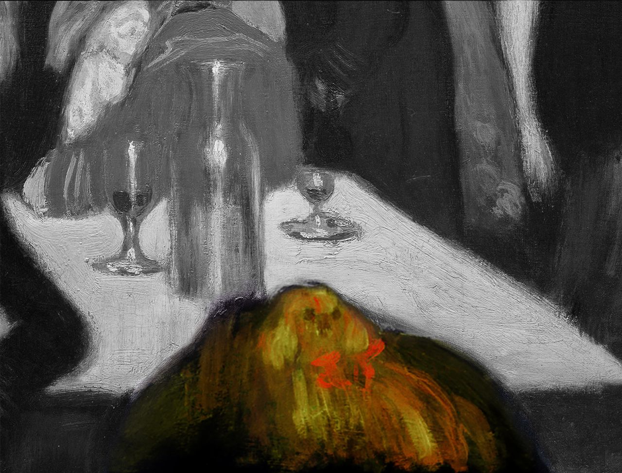 But studies ahead of the show, carried out by the Guggenheim in collaboration with experts from the Metropolitan Museum of Art and the National Gallery of Art in Washington, D.C., revealed a lively fourth guest at the table, covered up by a swath of dark paint.