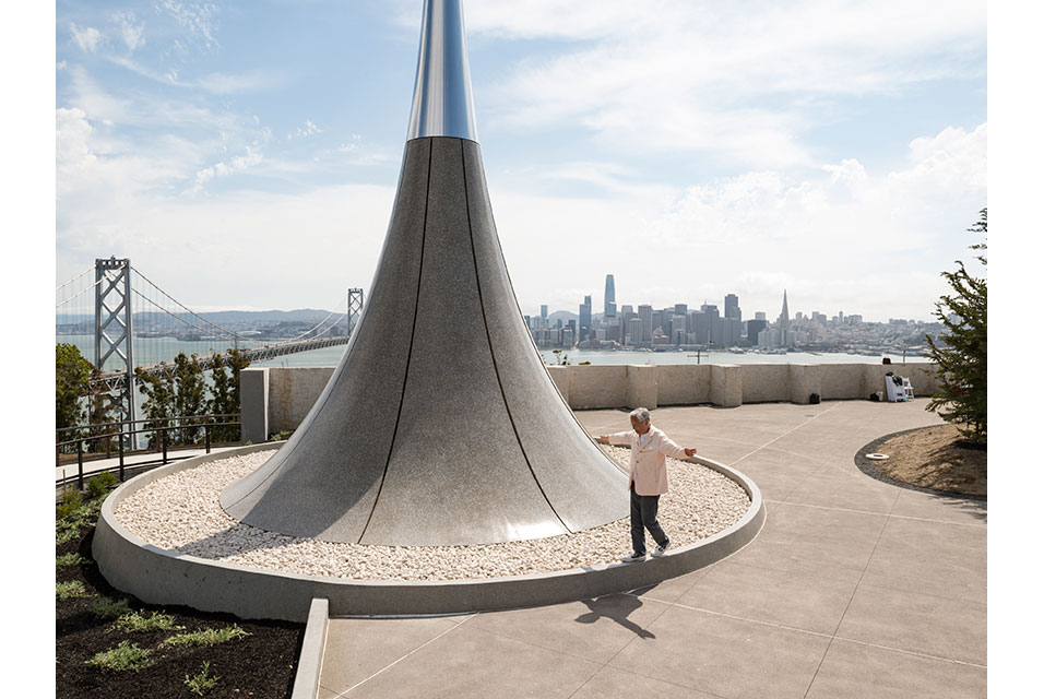 The sculpture also serves a more practical or political purpose, marking Yerba Buena Island and the adjoining Treasure Island, a naval base from 1942 to 1997, as a new cultural destination. With a budget of $2 million, “Point of Infinity” is the first major artwork developed under the Treasure Island Art Program, run by the San Francisco Arts Commission and funded by a “1%” program, which takes a cut of construction costs from new development on the islands.