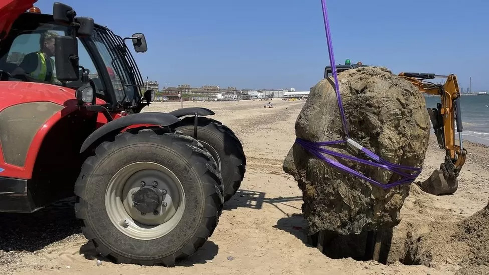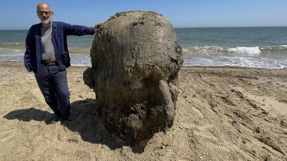 The 1.8m (6ft) head, embedded in the sand, will become visible at low tide and will be submerged under the waves when the water is high.