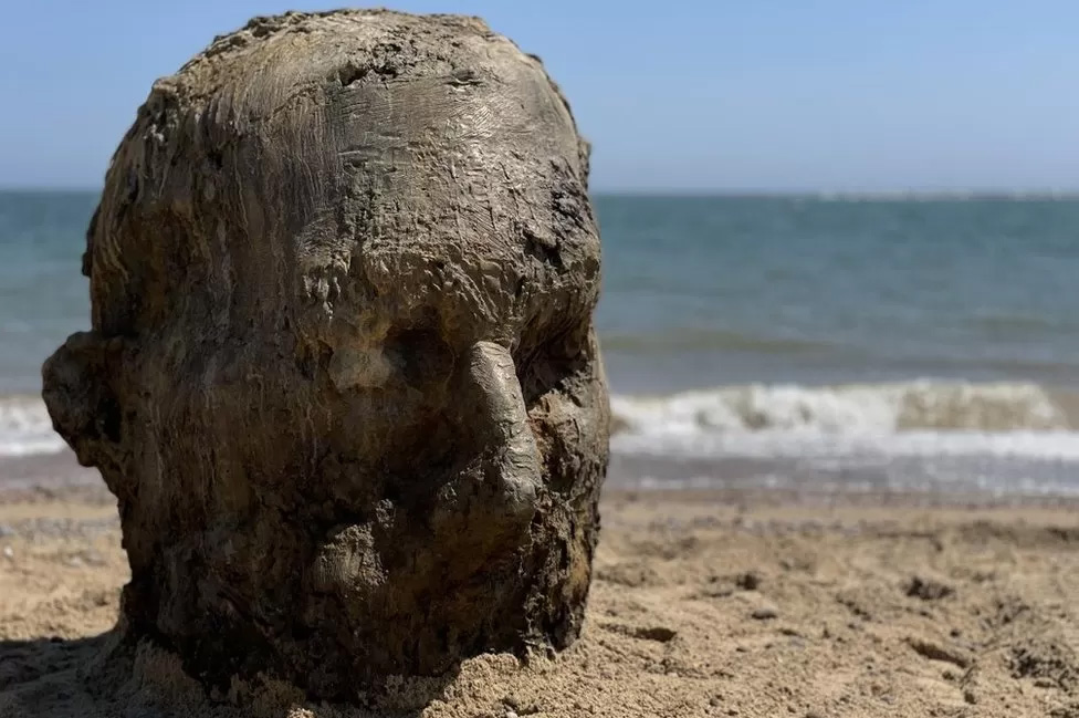 Known as the "Chthonic Head', it weighs about 750kg (1,650 lbs) and is expected to remain on the beach for about a month.