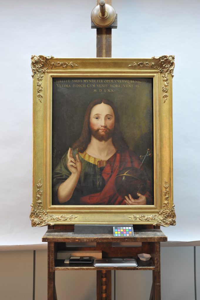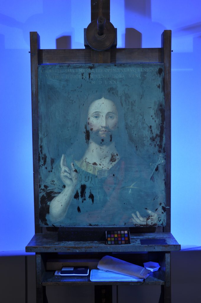 The development has arrived with Bettbrunn’s new parish chaplain, Peter Stier, who hopes to make the painting more accessible to the public by placing it in St. Salvator’s little chapel. Before doing so, Stier contacted BLFD to make sure the new environment wouldn’t damage the 16th-century painting that depicts Jesus as Salvator Mundi, the savior of the world, as symbolized by the orb he holds in his left hand.