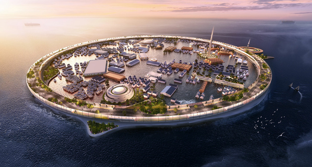 Designboom_ With climate change taking a turn for the worst, our blue planet is witnessing an alarming shift in rising sea levels, pushing countries to explore oceans as new habitable ‘grounds’. As such, the concept of floating cities has taken center stage in recent years (check Estudio Focaccia Prieto’s ‘polimeropolis‘ or BIG’s floating architecture for Busan as examples), and much like THE LINE in Saudi Arabia, building such projects from scratch comes with its own extraordinary opportunities and challenges. Following in others’ footsteps, Japanese maritime startup N-ARK recently announced its plans to develop a floating and smart healthcare metropolis dubbed ‘Dogen City’. This innovative proposal will integrate food production, architecture, data, energy, and water into one symbiotic system which utilizes the deep blue as a new and resilient economic zone called ‘NEW OCEAN’.