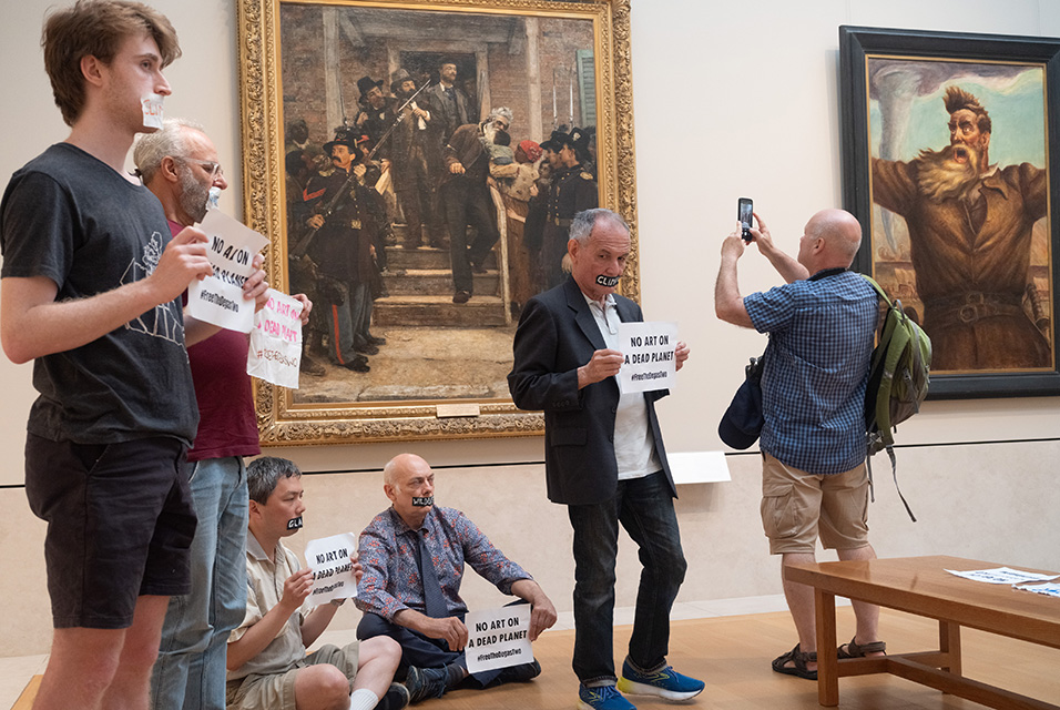 In April, at the National Gallery of Art in Washington two eco-activists splattered paint on the case surrounding a 19th century Degas sculpture, “Little Dancer Aged Fourteen,” drawing pine trees and frowny faces onto its plinth with red and black paint — symbolic of blood and oil.