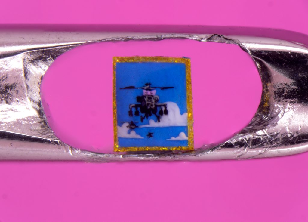 A tiny replication of Banksy’s Happy Choppers is pictured. Courtesy of David Lindon