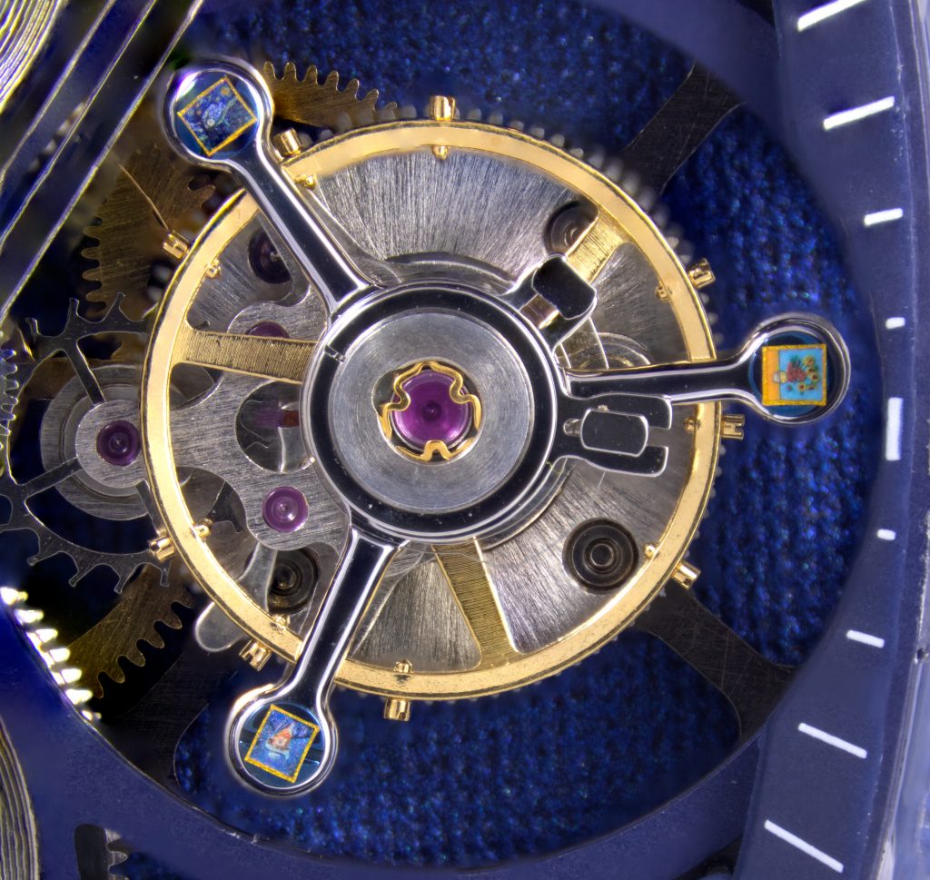 The idea for the watch came about because Hammond and Lindon both wanted to create a “wearable art gallery” that combines the intricacies of a watch with Lindon’s skill at creating detailed microscopic paintings to highlight the Van Gogh Museum’s 50th anniversary.