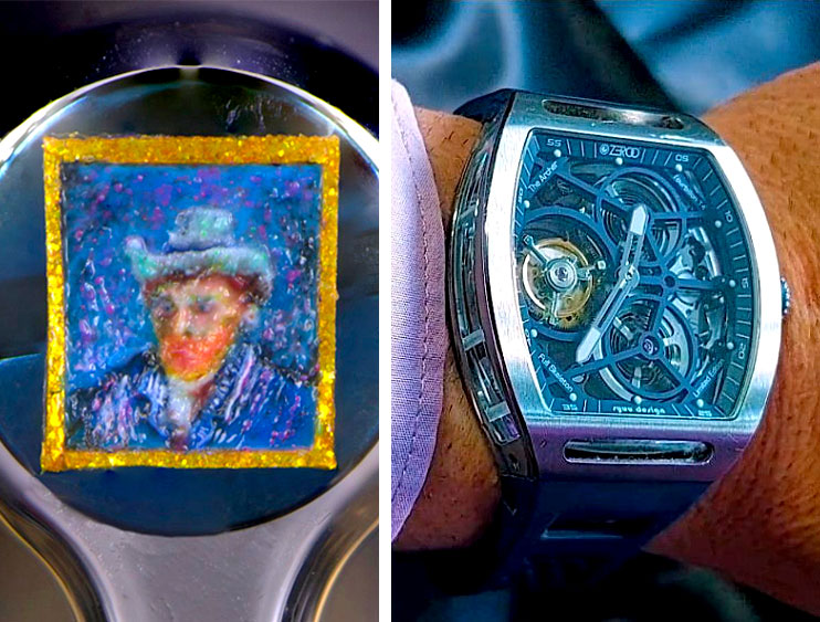 Artnet_ Three of the most famous works by Vincent van Gogh have each been recreated at a microscopic size—smaller than a period—inside of a watch, making for the ultimate in wearable art.