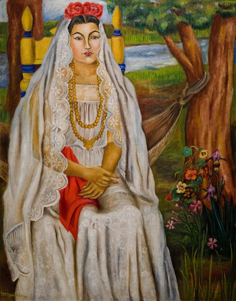 Maria Izquierdo, born San Juan de los Lagos, Mexico 1902, died Mexico City 1955, Bride from Papantla (portrait of Rosalba Portes Gil), 1944, Mexico City, oil on canvas, 125.0 x 100.0 cm; The Jacques and Natasha Gelman Collection of 20th Century Mexican Art and the Vergel Foundation