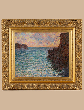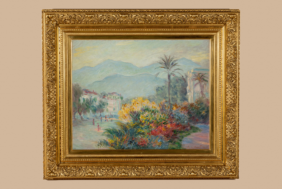 Located in Asheville, North Carolina, Biltmore is the home of George Vanderbilt, the youngest son of William Henry Vanderbilt. Having grown up surrounded by his father’s famous collection of paintings, George Vanderbilt inherited his father’s passion for admiring and collecting art. A lifelong patron of the arts, he supported more modern artists of his time and acquired several paintings from art dealer Paul Durand-Ruel, a dedicated advocate of the Impressionists. Impressionism interested Vanderbilt so much that over a ten-year period, George purchased sixteen paintings, including works by Claude Monet, Édouard Manet, Pierre Auguste Renoir, Maxime Maufra, and James McNeill Whistler. In 1892, he acquired two paintings from Durand-Ruel by Monet – “Strada Romana à Bordighera” (1884) and “Belle-Île, le chenal de Port-Goulphar” (1886).