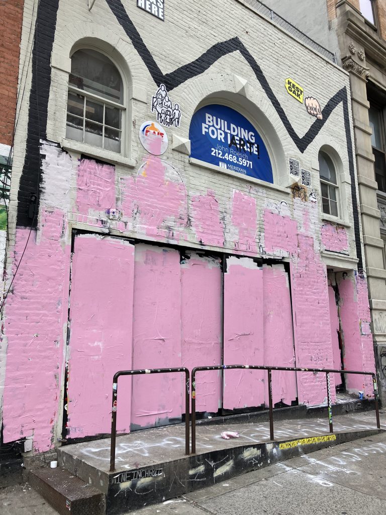 Artnet_ Painting the town pink? Regulars strolling around the Bowery in New York won’t have failed to notice a layer of pink paint has been rolled all over the former studio of Jean-Michel Basquiat at 57 Great Jones Street. Even a memorial plaque dedicated to the iconic artist was targeted, according to the East Village news blog EV Grieve.