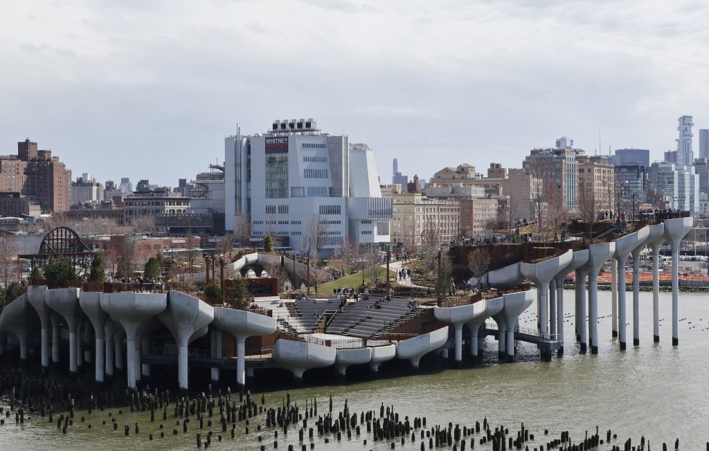 People walk through Little Island in the Hudson River as it sits in front of the Whitney Museum of American Art on April 1, 2023, in New York City. (Photo by Gary Hershorn/Getty Images)
