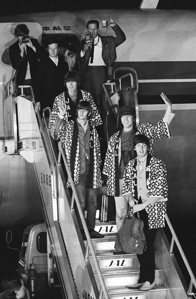 The Beatles arriving at Tokyo International Airport at Haneda in Tokyo ahead of their tour. Photo: JIJI Press/AFP via Getty Images