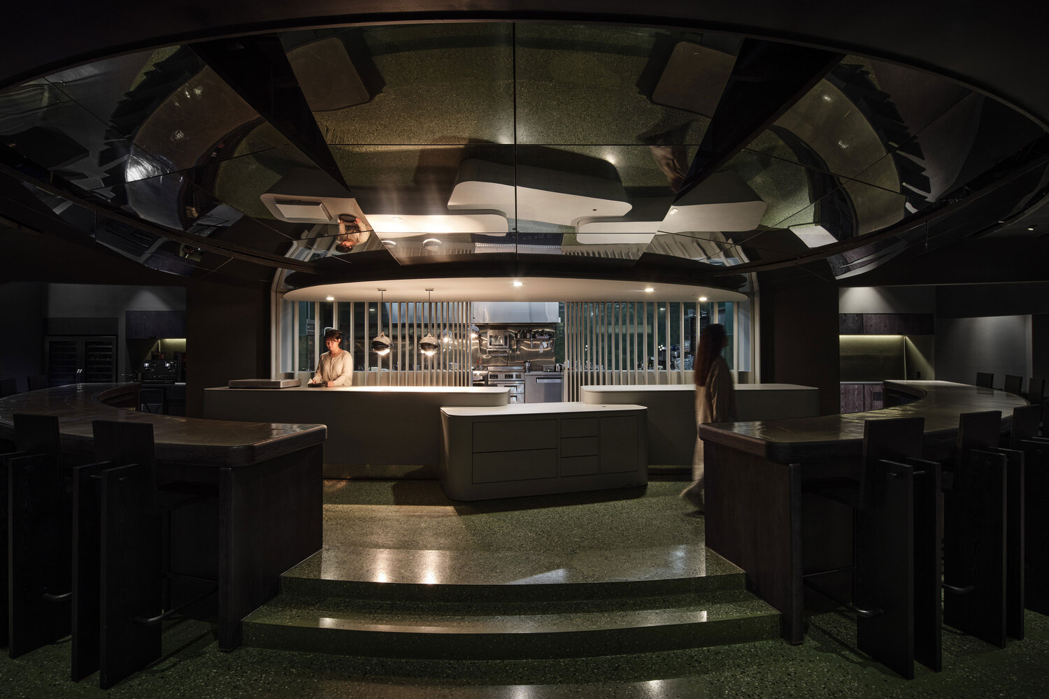 Inside Confier, the experience unfolds like entering a theater, moving around the stage, and communicating with the space. Along a dark corridor, there's a unique reception (Backstage) facing a bustling main stage visible beyond the curtains, a front kitchen & open kitchen (Main stage) where patrons can communicate and enjoy, and tables (auditorium) arranged in a formation inspired by the layout of a theater audience. Particularly, the mirror structure installed above the front kitchen allows a view of the final plating scene from any position, thanks to precisely planned reflective angles.