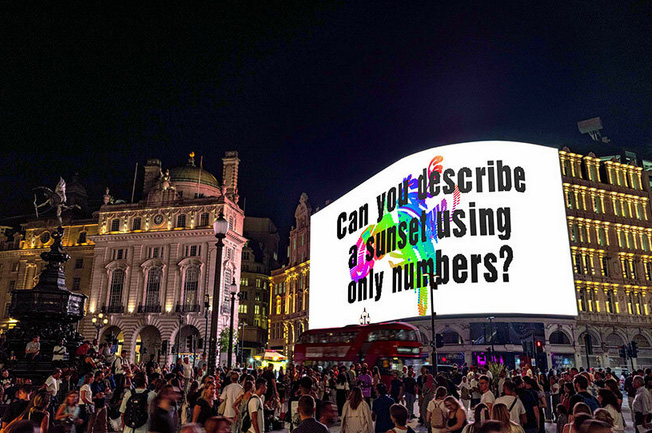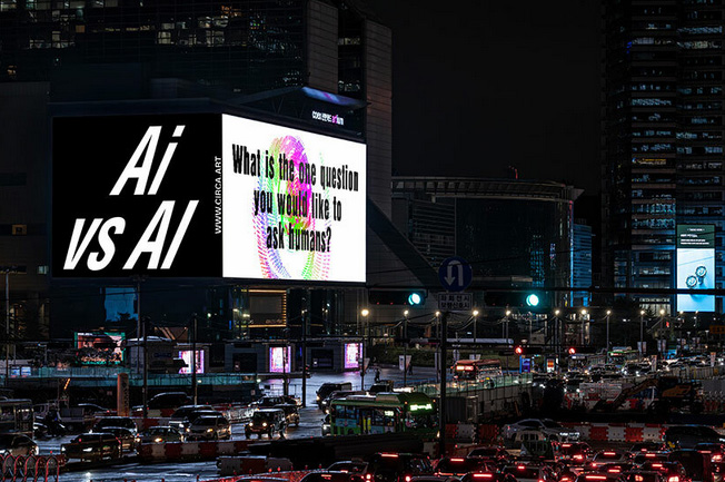 Over the course of 81 days, the artist poses questions directed at both artificial intelligence and the broader public. Presented every evening at 20:24 local time on Piccadilly Lights, the questions vary from philosophical and scientific to humorous and absurd.
