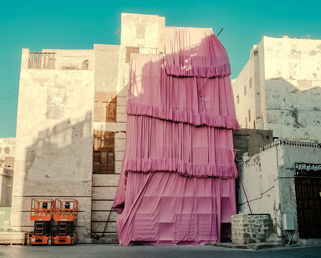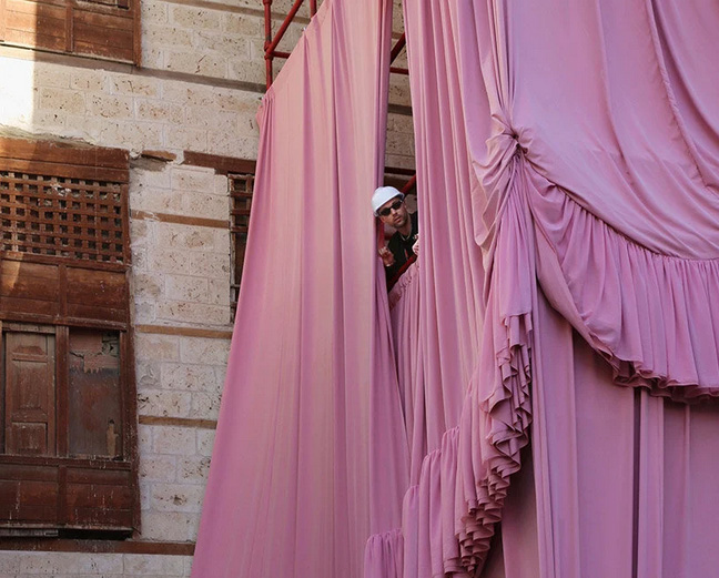 While appearing to shroud an ancient structure, Take Over Jeddah cleverly engages with its surroundings without physically touching the building. This deliberate design choice sparks discussions about the meaning and value of architectural objects, particularly those facing neglect and representing the city’s cultural and societal history. It challenges viewers to consider the significance of heritage beyond its material presence.