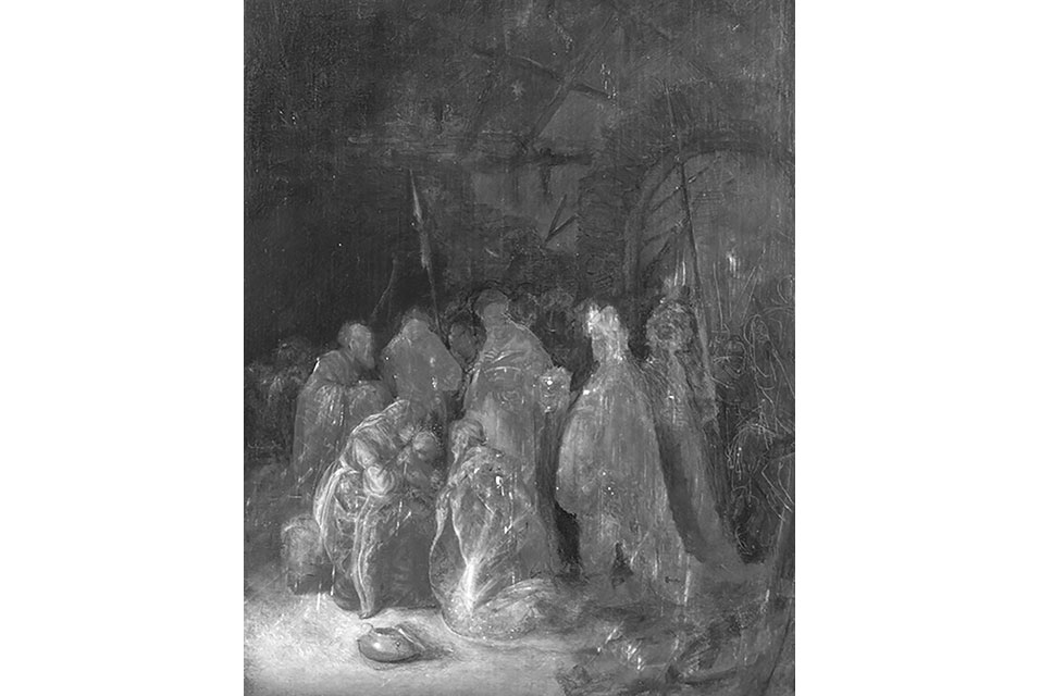 “The technique and application of paint suggest an artist working in the style of Rembrandt, yet constructing the scene differently,” he wrote, placing figures, not as he painted but in preconceived spots.