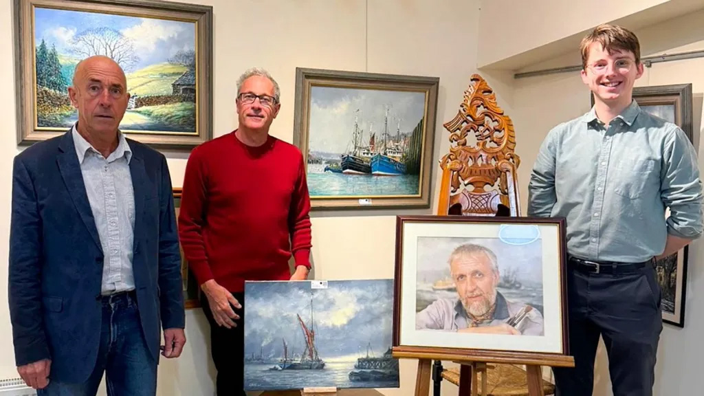 The collection of paintings was put up for sale by the Mr Rigg's sons, Michael, left, and Ian, centre. They are pictured with Dominic Cox, of the David Duggleby auction house