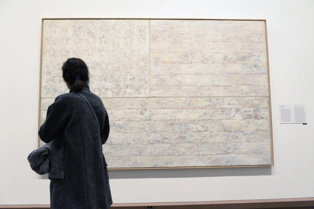 The work “White Flag” by Jasper Johns is on display in the Metropolitan Museum of Art in New York City, USA, 08 March 2014. Photo by Felix Hörhager/picture alliance via Getty Images.