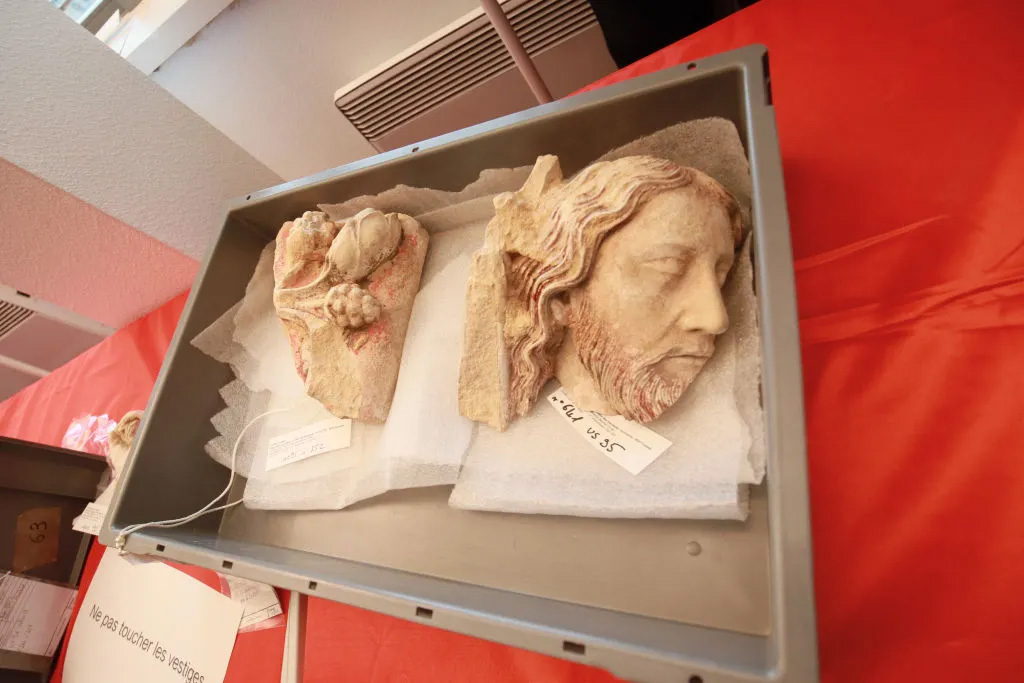 Life-sized heads and torsos of limestone statues, including one of Christ, were also unearthed. A 13th-century jubé or rood screen that previously separated the choir and sanctuary from public view was among the more significant architectural finds.