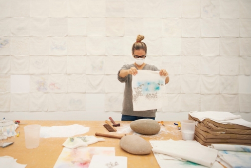 Lou’s artwork is a thoughtful meditation on community and labor, as well as process and repetition. She investigates the sociopolitical constructs of gender and class by challenging conventional definitions of art and craft, and of “women’s work.” For more than 20 years, Lou has made sculptures and installations using glass beads as her primary medium. In that time, she has moved from working alone on her often large-scale work to creating a communal studio practice and developing collaborative working methods with women artisans in South Africa and Brazil.