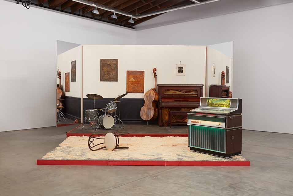 In all aspects of his work, Moran’s creative process is informed by one of the essential tenets of jazz music: the “set” in which musicians come together to engage in a collaborative process of improvisation, riffing off of one another to create the musical experience. The exhibition highlights Moran’s mixed-media “set” installations STAGED: Savoy Ballroom 1 and STAGED: Three Deuces (both 2015), sculptural vignettes based on storied music venues from past eras that were his acclaimed contributions to the 2015 Venice Biennale. The presentation includes the premiere of a new sculptural commission from this series that takes inspiration from the celebrated New York jazz venue Slugs’ Saloon, which was open from 1964 to the early 1970s. Also featured is a selection of Moran’s most recent charcoal drawings and time-based media works from his long-standing collaborations, or sets, with visual artists including Joan Jonas, Lorna Simpson, Glenn Ligon, Julie Mehretu and Theaster Gates.