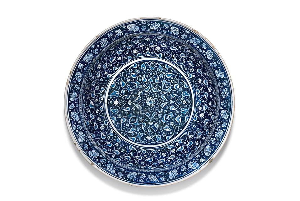One of the most important pieces of Iznik pottery remaining in private hands, this large and intact dish, or charger, represents a significant discovery in the field of Ottoman art.