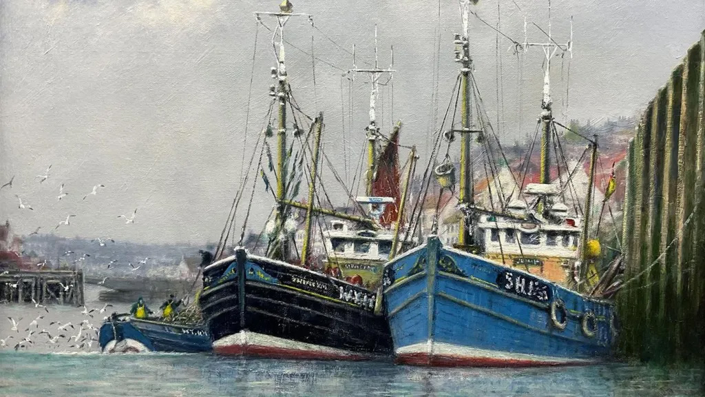 A painting of fishing vessels in Whitby, by Jack Rigg, has sold at auction for £1,600 to a buyer from